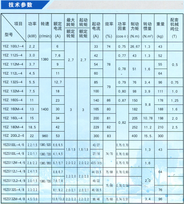 YEZ、YEZW、YEZS系列錐形轉(zhuǎn)子電動機是與建筑機械配套而專門設(shè)計的產(chǎn)品,它融電機和制動器于一體,具有起動轉(zhuǎn)@夭、制動可靠、結(jié)構(gòu)緊湊、體積小、重量輕、可頻繁起動等特點,且YEZ系列錐形轉(zhuǎn)子電動機安裝尺寸與Y系列電機相同,可與同型號電機互換,具有廣泛的適應(yīng)性?! ≡撾姍C的主要特點是:定子內(nèi)表面與轉(zhuǎn)子外表面都是圓錐形,電機軸除作旋轉(zhuǎn)運動外,還作軸向竄動。當電機通電時,定轉(zhuǎn)子鐵心產(chǎn)生軸向磁拉力使轉(zhuǎn)子軸向移動并壓縮彈簧,從而使風扇制動輪與制動座(后蓋或端罩