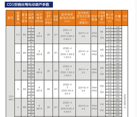3、CD1型電動(dòng)葫蘆的起升速度為常速,可滿足一般使用要求;MD1型電動(dòng)葫蘆具有兩種起升速度——常速和慢速。